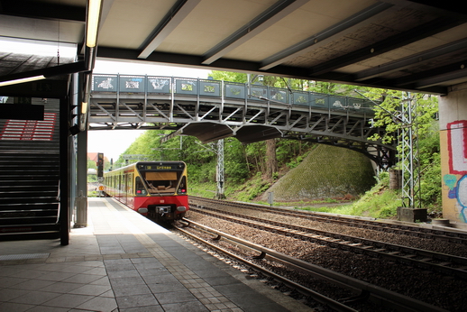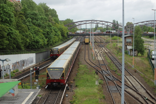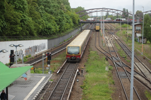 Ringbahn verlässt den S-Bhf, Herrmannstr. Richtung Osten.
