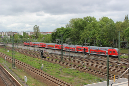 Ein Regionalzug verlässt den Bhf. Gesundbrunnen in Richtung Osten.
