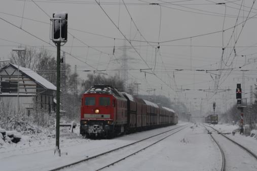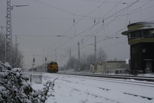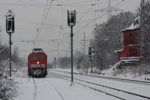 Lok 232-388-9 auf der Güterzugstrecke im alten (stillgelegten) Bahnhof Ratingen-Lintorf in Richtung Abzweig Angertal - zunächst wartend vor dem Streckensignal ...