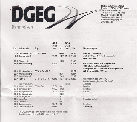 Am 22.05.2011 fand in Düsseldorf eine Abschiedsfahrt mit dem GT8-DÜWAG Triebwagen Nr. 2664, dem Großraumbeiwagen Nr. 1679 und dem Triebwagen GT6-DÜWAG Nr. 2432 (nur teilweise) statt.