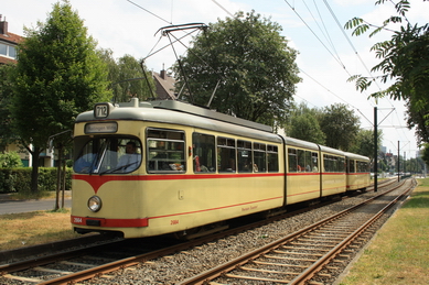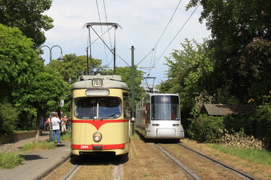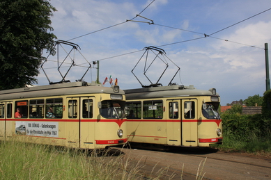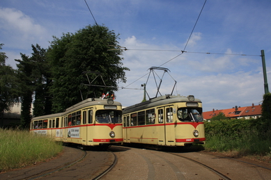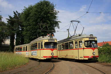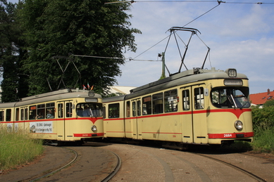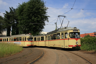 GT6 TW 2432 fährt auf dem Innengleis daneben