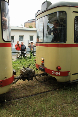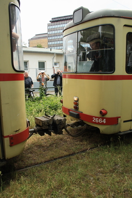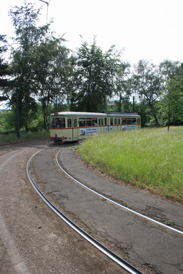 Ankunft vor dem Strassenbahnhof "Am Steinberg" - der GT8 TW nr. 2664 bleibt vor dem Bahnhof stehen.
