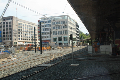 Bevor wir der 712 folgen kann man einen Blick auf die mehrfach veränderte Gleisführung in der Baustelle am Jan-Wellen_platz werfen.