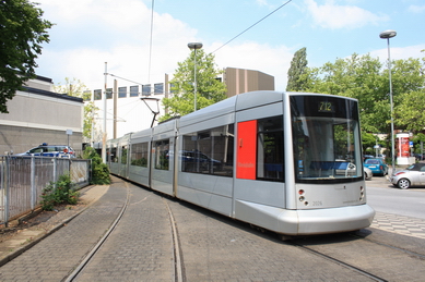 In der s.g. "Blockumfahrung" warten wir den Planzug der Linie 712 ab, um uns hinter diesem auf den Weg nach Ratingen-Mitte zu machen.